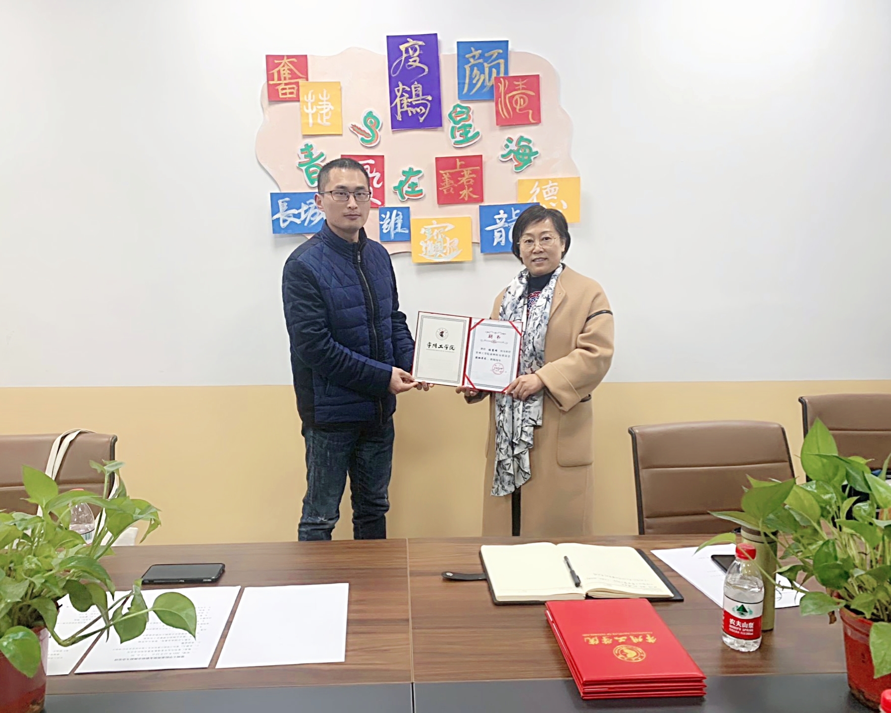 王文介绍了学校校友会工作开展总体情况,特别是校友工作者队伍建设、校友返校以及主题特色活动、校友信息化平台建设等方面情况,代表因公出差未能到场的上届会长韩斌总结了泰州校友会自成立以来的主要工作。并宣读了关于换届申请的批复以及通过常州工学院泰州校友联谊会第二届理事会名单并为泰州校友联谊会授牌,计算机信息工程学院党委书记李晓芳为新一届泰州校友会理事们颁发聘书。