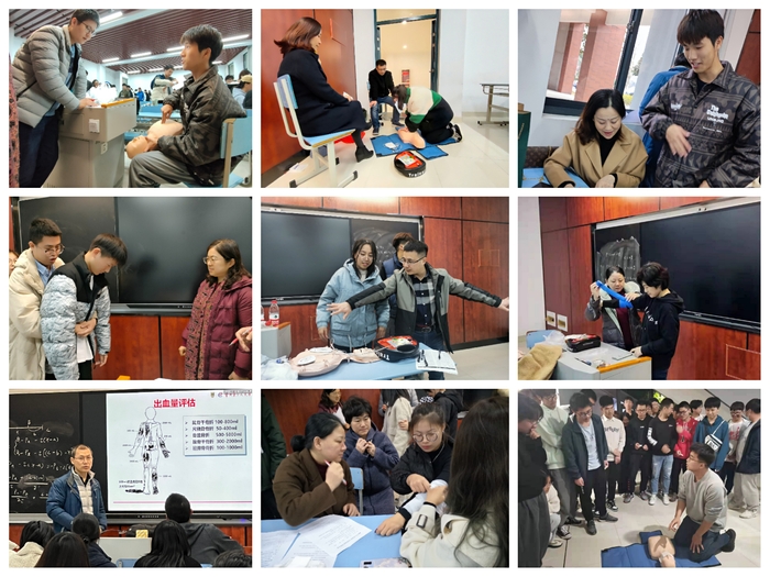 12月12日,《心肺复苏与创伤救护》公选课顺利结课,9名授课老师分组对学生进行理论与技能操作考试,逐一进行打分。全体同学均顺利通过了考核,后续还将从中选取若干名成绩优秀的学生再次接受强化培训,并建立长期稳定的急救对接工作。