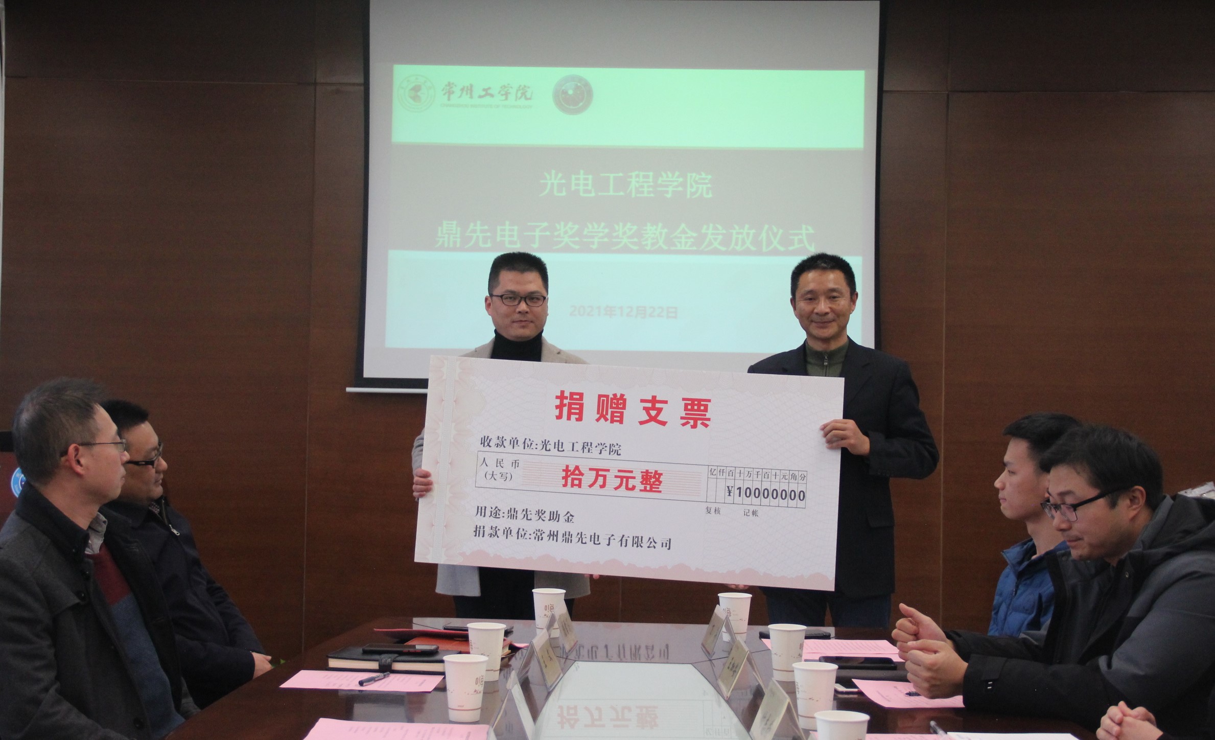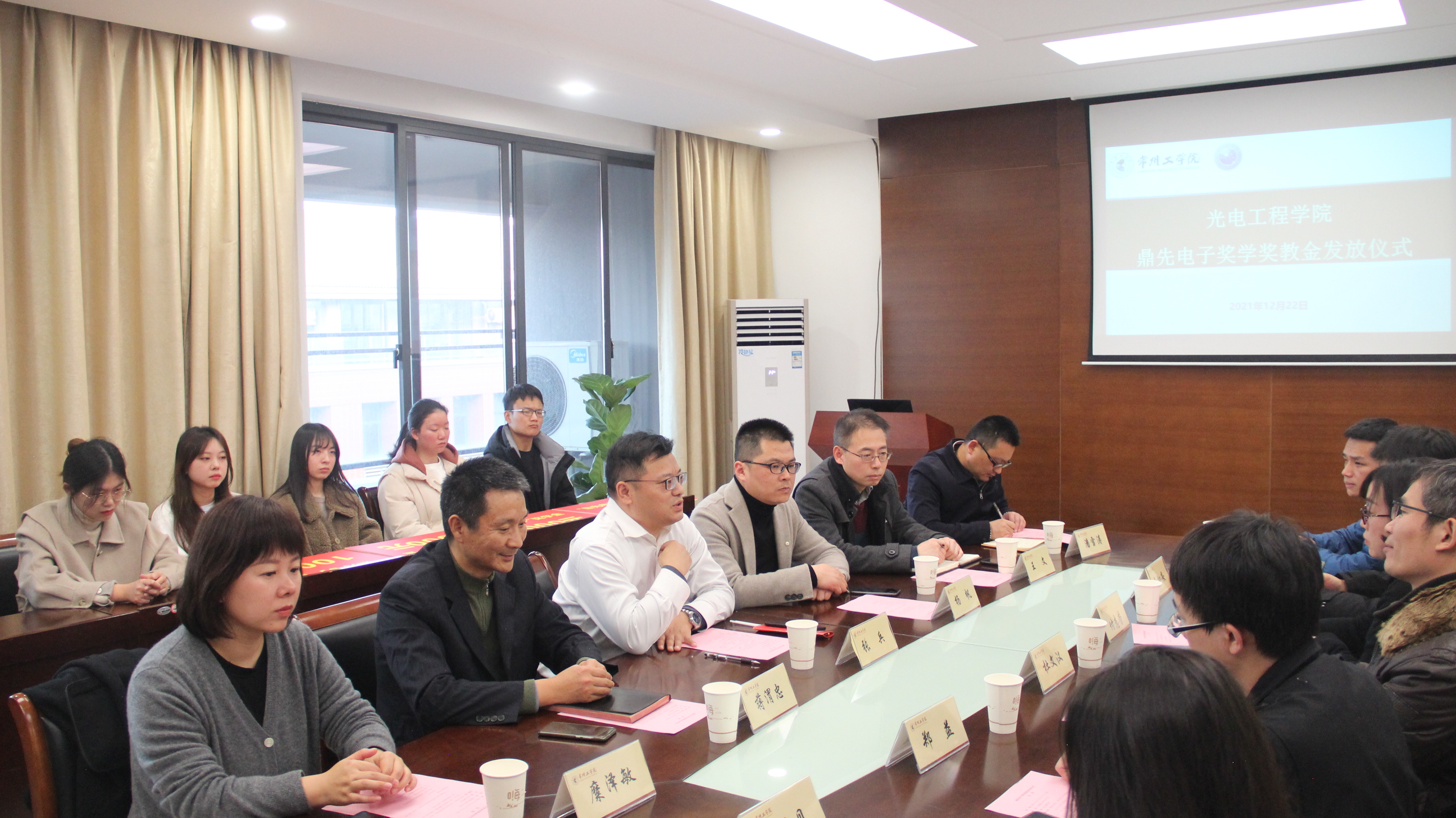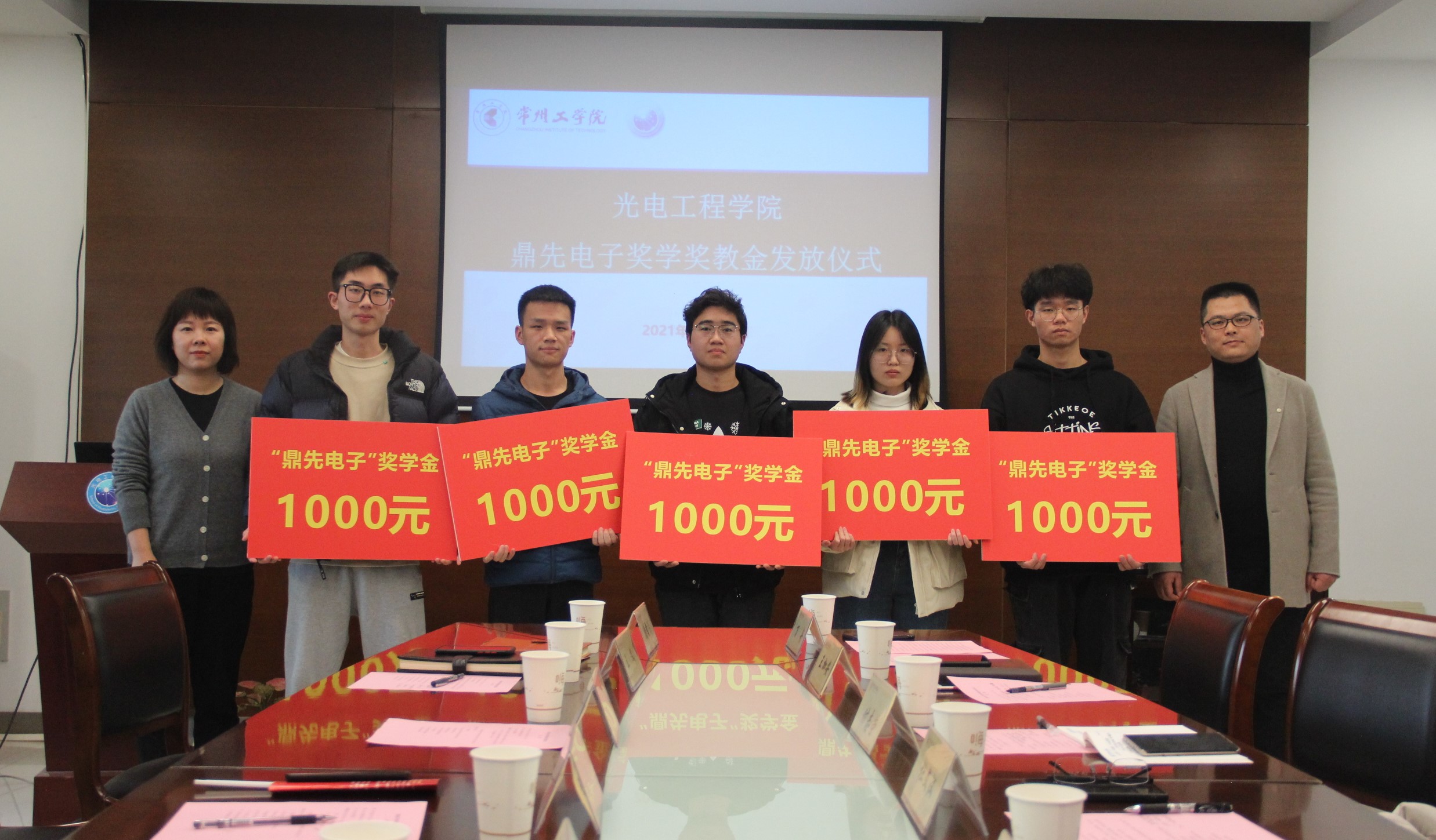12月22日下午,光电工程学院举行鼎先电子奖学奖教金发放仪式。副校长张兵、常州鼎先电子有限公司总经理杨帆、校友办主任王文、学生处副处长糜泽敏、学院党政领导和获奖师生代表参加了颁发仪式。仪式由学院院长潘雪涛主持。