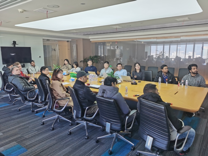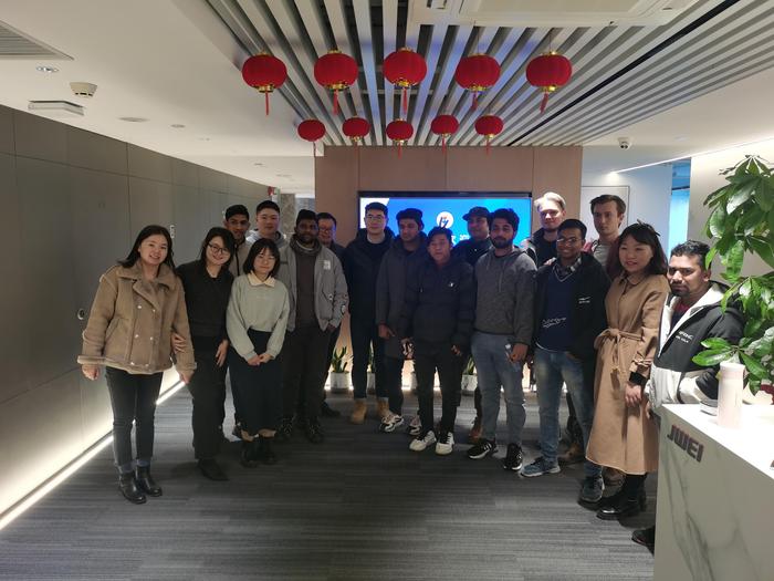 12月30日,国际交流学院组织软件工程、国际经济与贸易等专业的十余名留学生赴江苏聚为电子科技有限公司参观交流。