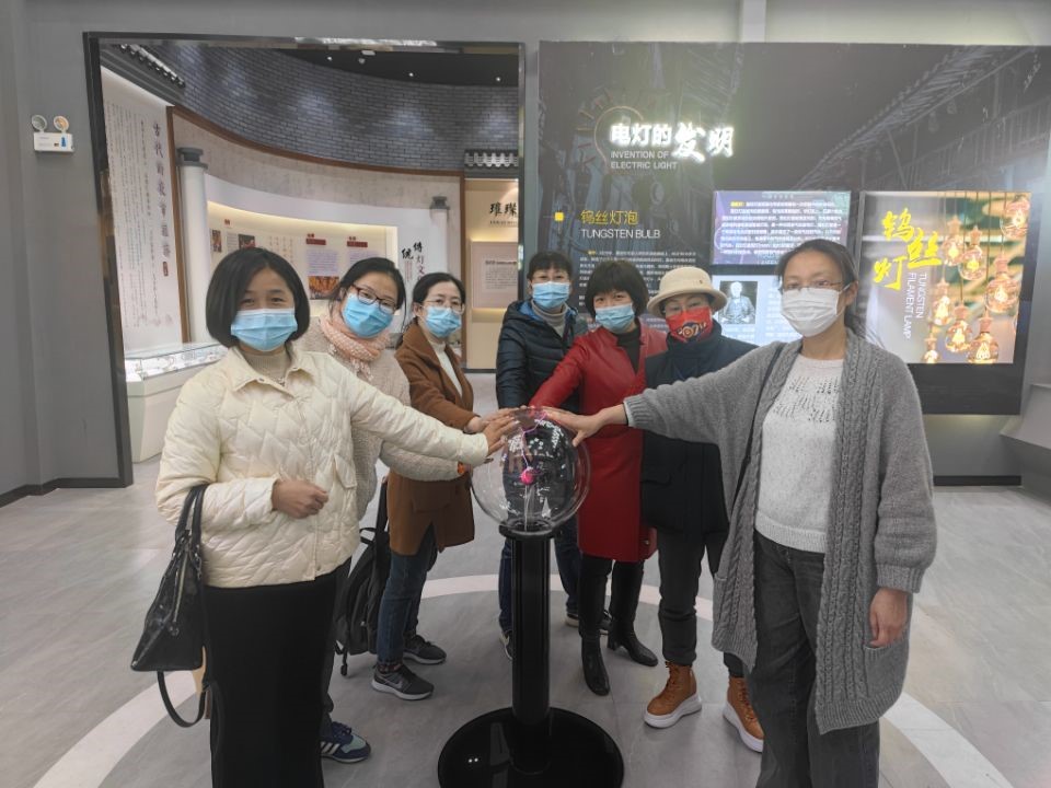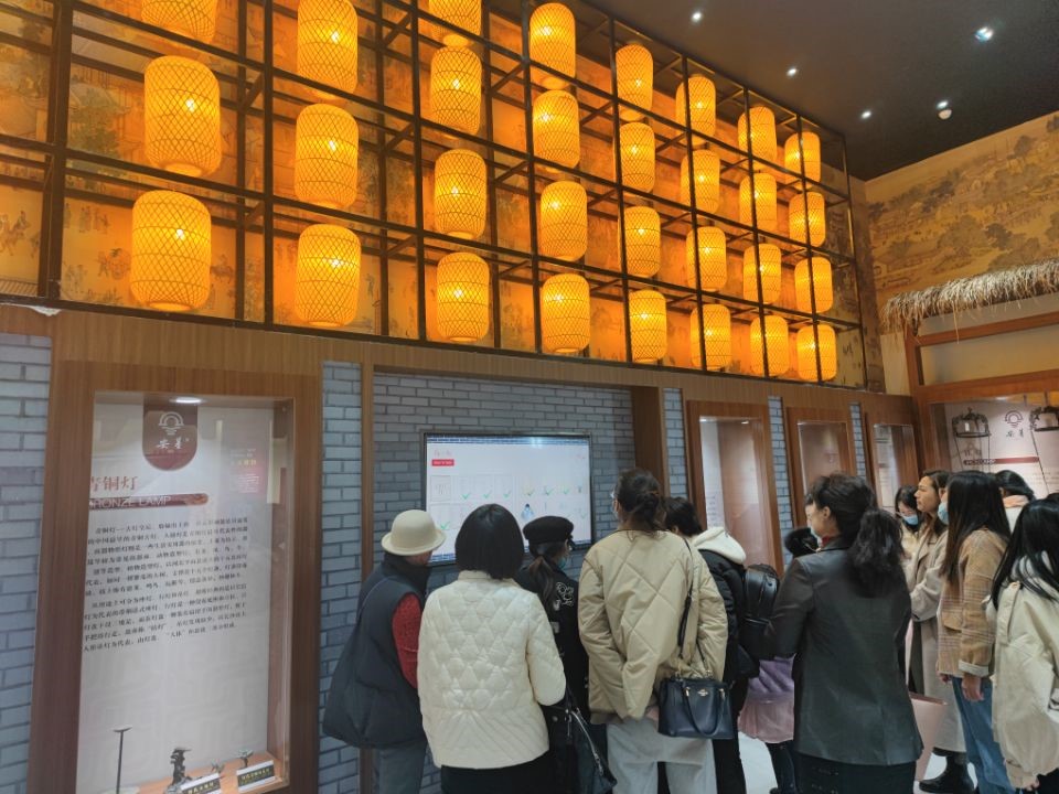 游览完三江口,女教工们来到了位于安基村运河南岸的千寻灯博馆,整个场馆是以时光里的光彩万象为主题,结合邹区镇灯具闻名的特点,展示了灯具的发展史和演变史。女教工们认真地听着讲解,并通过互动体验增长了许多关于灯具的知识。