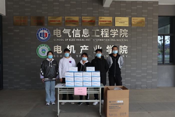 3月28日,电气信息工程学院2021届校友颜宇鸿代表苏文电能科技股份有限公司,为学院的学子们捐赠口罩6000只。发放工作在室外空旷处进行,地面设置1米线,全员全程佩戴口罩。