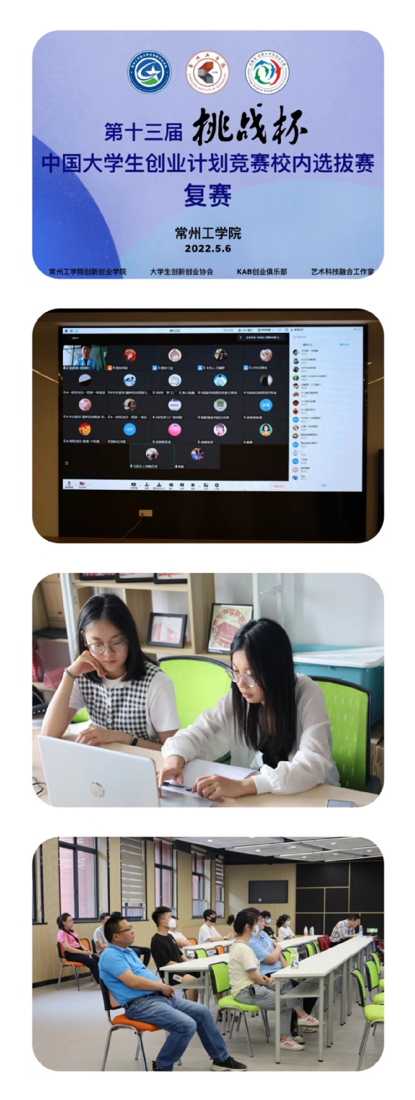 5月7日,第十三届“挑战杯”大学生创新创业计划竞赛校内选拔赛复赛在教融合大楼C座路演大厅举行,邀请了常州大学团委书记蒋琳,海鲸合荟创业基金联合创始人、上海鲸莱投资管理有限公司总经理、清华大学创业导师马良佳,镇江腾图科创、南京腾图节能、南京米优体育、上海甑峰教育创始人林琳担任专家评委。