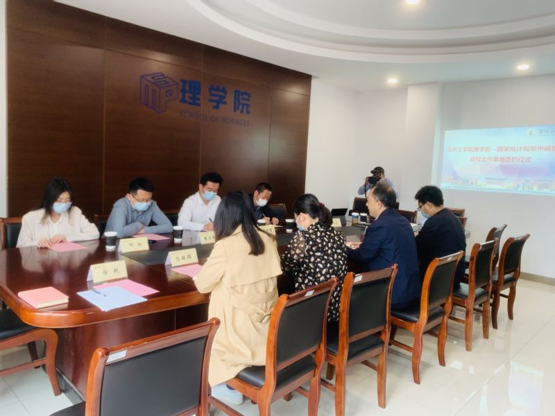 5月12日,理学院举行政校合作基地签约仪式。理学院院长兼党总支书记陈荣军代表学院与国家统计局常州调查队签订政校合作基地协议,并为基地授牌。