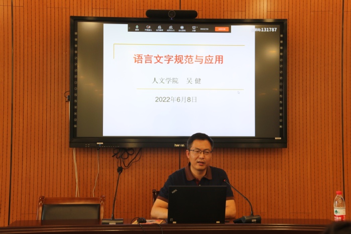 为贯彻落实学校《关于开展新闻出版领域不规范使用汉字问题专项整治工作的通知》要求,充分发挥主流媒体作用,加强对汉字使用相关法律、制度、规定、标准的宣传解读,广泛宣传规范使用汉字的重要意义,引导广大教职工自觉增强规范用字意识,6月8日下午,图书馆党总支、继续教育学院党总支、资产经营有限公司直属党支部特邀人文学院党委书记吴健,作《语言文字规范与应用》专题讲座,图书馆、档案馆、继续教育学院、资产经营有限公司全体教职工参加。