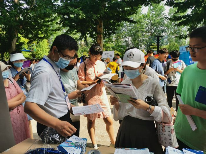 各招生工作组先后深入高邮第一中学、蒋王中学、安宜高级中学、仪征中学等14所中学,结合当地生源情况,开展了形式多样的精准宣传。工作组成员不畏酷暑,积极主动向广大考生及家长介绍我校的主要优势和专业特色,并针对考生分数给出志愿填报的个性化建议。此外,学院拓展宣传渠道,进校宣传与驻点宣传相结合,线下宣讲与线上答疑相结合,巩固与拓展生源基地相结合,学工教学联动与全员参与相结合,发挥了积极成效,吸引了众多考生及家长,扩大了学校影响力,取得了良好宣传效果。