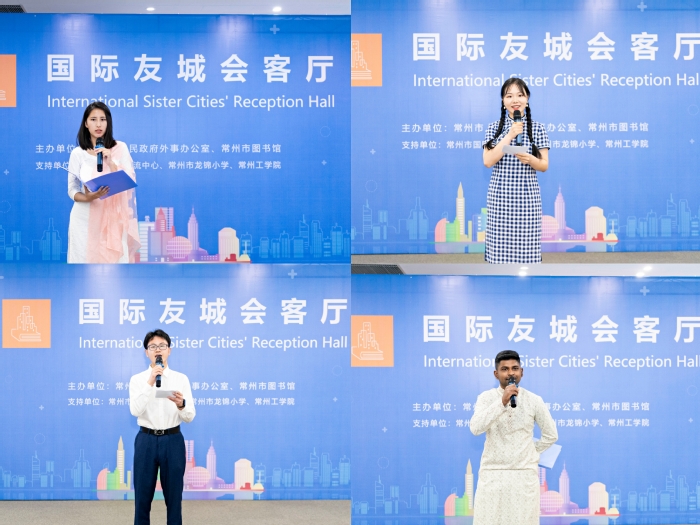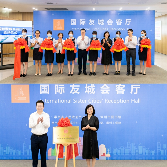 6月28日上午,常州市“国际友城会客厅”启动仪式和“一带一路”友城图书专区揭牌仪式在市图书馆举行。该活动由常州市人民政府外事办公室和常州市图书馆主办,常州市国际交流中心、常州荆溪玉陶艺术馆、龙锦小学和我校协办。副市长桓恒、我校副校长汪群、市外事办主任张宇、市文广旅局副局长严旭华、市图书馆馆长钱竑等嘉宾出席。我校20余名中外学生参加活动。