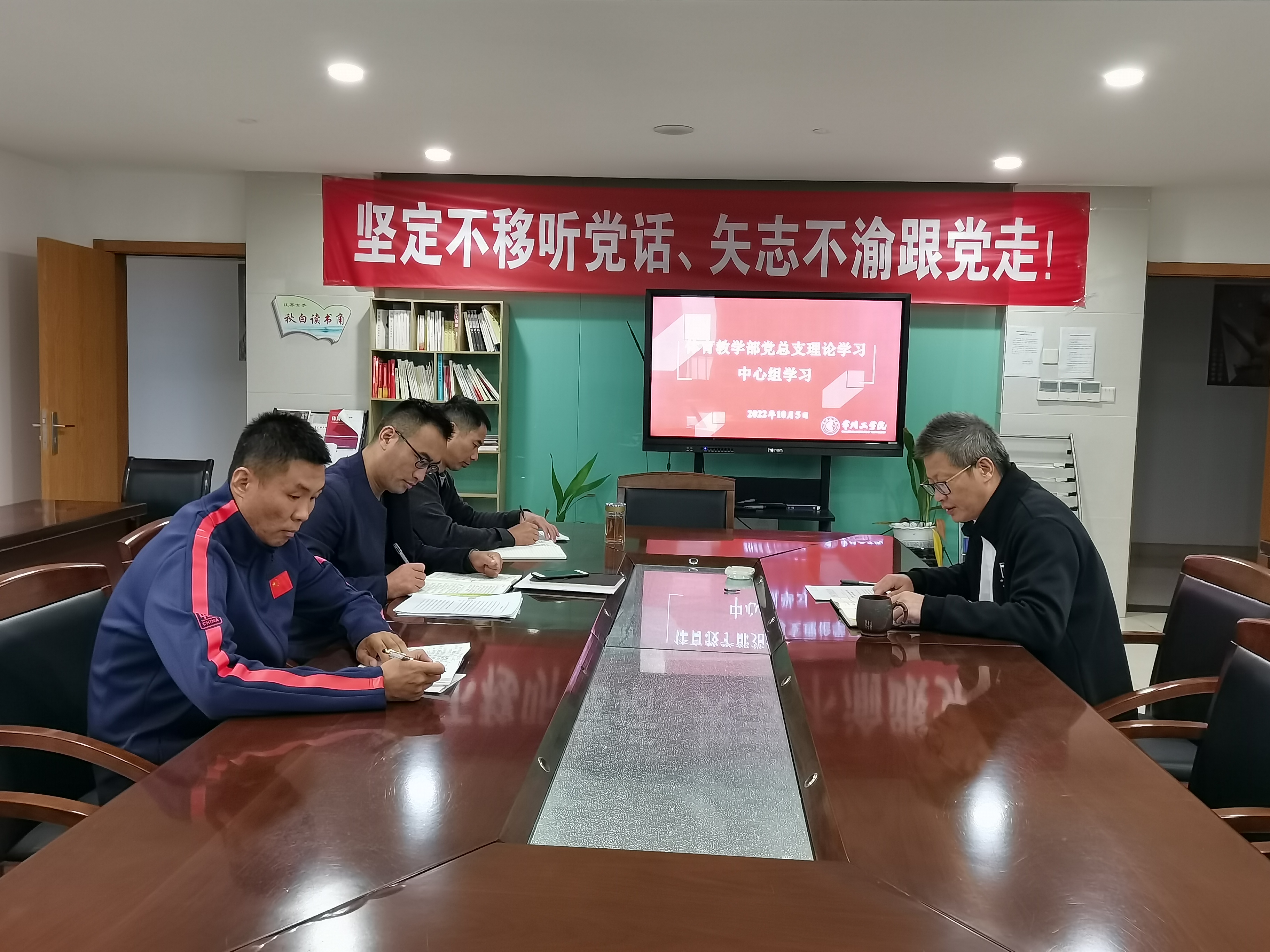 10月5日,体育教学部党总支召开理论学习中心组学习,重点学习习近平总书记关于全过程人民民主重要论述和《习近平谈治国理政》第四卷,会议由党总支书记周中军主持。