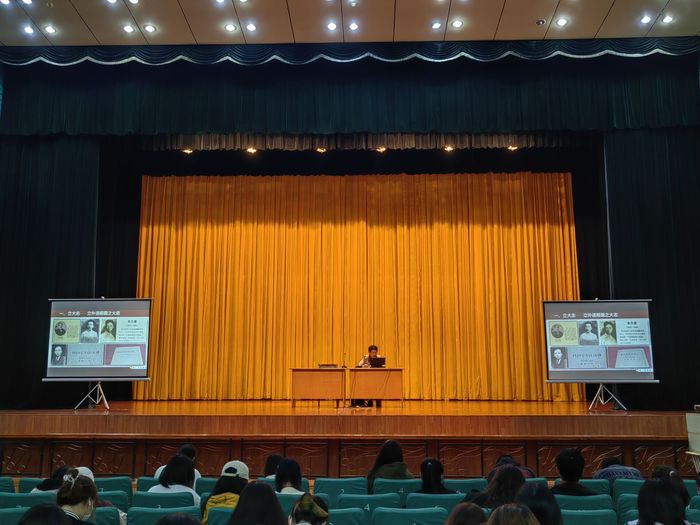 10月6日晚,外国语学院召开新生开学第一课,院长李静主讲,学院学工办主任陆婷主持,全体2022级新生参加。