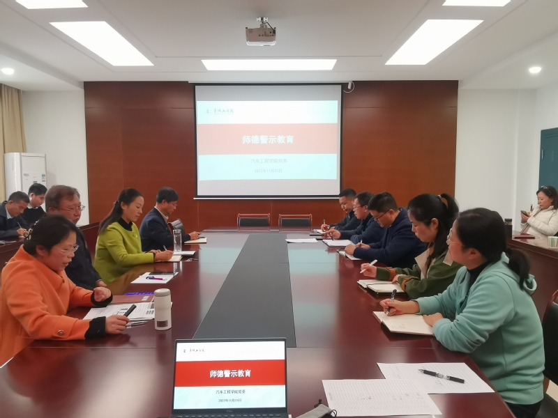 为深入学习贯彻党的二十大精神,进一步强化师德师风建设,11月23日下午,汽车工程学院组织师德警示教育专题学习,全体教职工参加,党委书记张巧凤主持。