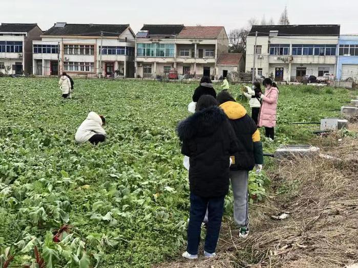 体验田野劳作 12月2日下午,人文学院2022级广播电视编导专业和2022级汉语言文学专业师生共赴薛家镇丁家村吕丁萝卜文创工场参加劳动实践活动。