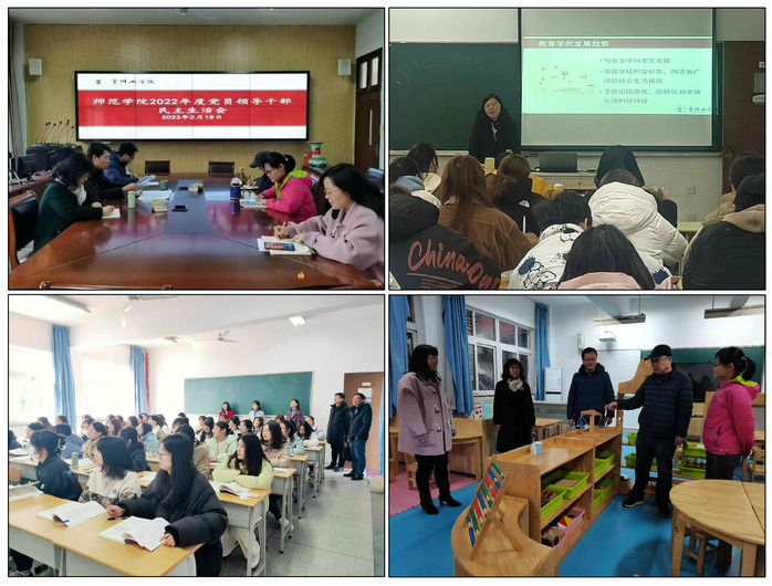 谋划部署推动开局起步 2月22日下午,学院召开全体教职工大会,肖华主持会议。会上,新到岗的4位领导班子成员分别作表态发言,表示将不辜负组织和老师们的殷切期望,尽快进入新的角色,认真履职,严于律己,勇于开拓,同心同德,努力开创师范事业发展新局面。对照学校年度目标,崔涛结合学院工作实际,从“敬业守责,规范高效,推动学院内涵建设”“艺术契入,打造亮点,彰显师范专业特色”“守正创新,拓展融合,赋能基础教育改革”三方面进行工作部署,每一位师范人都要提高站位,坚守师范教育的办学初心使命,把培养热爱教育事业、扎根基础教育的优秀师范生作为师范学院办学一以贯之的主要目标和重要任务,以更新的状态、更优的作风、更务实的精神,坚定不移推动师范教育高质量发展。肖华作大会总结,他指出,2023年要继续坚持全面从严治党,深入学习贯彻党的二十大精神,进一步深入学习贯彻习近平总书记关于教育的重要论述;要坚持打造“党建引领,两代师表一起塑造”的品牌特色;落实立德树人根本任务,确立以学生为本,统筹学生事务和学术事务协调发展;坚持改革创新,抓质量,创特色,推进学院二级管理,不断深化产教融合;坚持“三全育人”、“五育并举”,全面提高师范生人才培养质量和就业质量。