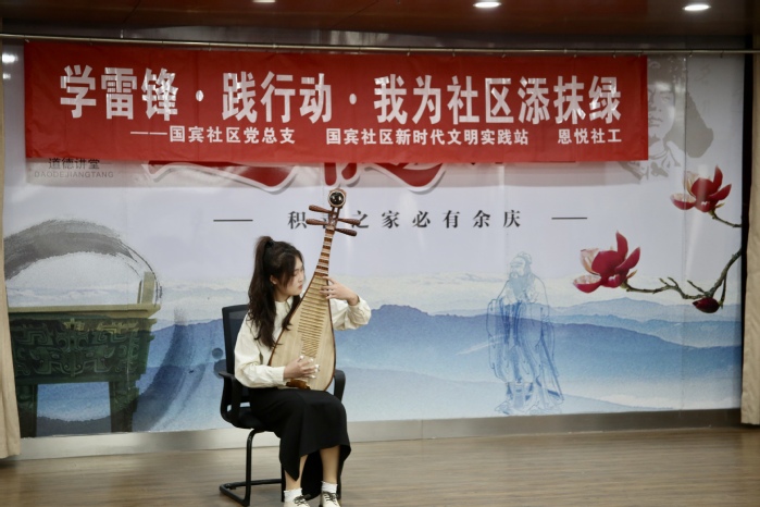 3月5日,学雷锋志愿服务队前往三井街道国宾社区。志愿者们发挥专业特长,为社区带来了教育咨询、雷锋精神宣讲、红色歌曲演唱、器乐作品表演等服务活动。师范学院副教授、心理学博士巫文胜和心理辅导员王利,为家长提供了家庭教育咨询会,针对孩子学习专注度不够、沉迷游戏、人格心理等问题给出了科学合理的建议,帮助孩子们快乐成长。在雷锋精神宣讲活动中,志愿者以生动有趣的小故事讲述了雷锋同志的生平事迹,声情并茂地领读《雷锋日记》,生动阐释了雷锋同志热爱党、热爱国家、热爱社会主义的坚定信念。在红色歌曲演唱现场,志愿者们和中小学生同唱了歌曲《我和我的祖国》。在器乐作品表演环节,志愿者分别使用萨克斯、琵琶、单簧管、古筝、小提琴先后演奏了《南泥湾》《少先锋队队歌》《灯火里的中国》等作品曲目。志愿者还带领社区中小学生共同学习了绿植知识,大家动手栽种了多肉、虎皮兰等绿植,以实际行动践行雷锋精神,积极为社区增添一抹绿色。