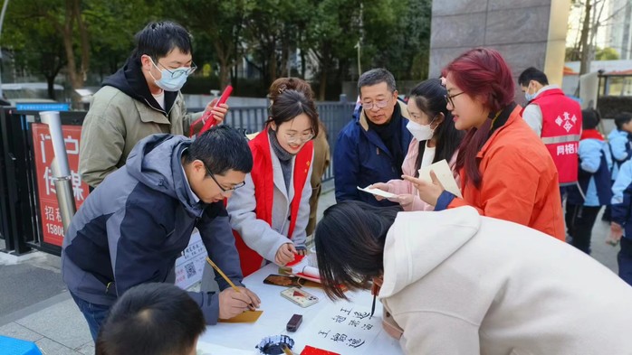 3月3日,学雷锋志愿服务队前往了三井街道阳光社区。志愿者们积极协助社区完成了理发、量血压、反诈宣传、法律援助等各类便民服务和政策宣传活动。小学教育专业的志愿者发挥专业优势,进行书法撰写,还向现场的社区居民普及了基本书法知识,号召学习弘扬中华优秀传统文化;学前教育专业的志愿者发挥手工制作专业特长,将书法小作品制作成了精致的雷锋语录书签。志愿者们以实际行动践行着雷锋精神,助力社区“微梦行”公益集市开市,引导社区居民弘扬“奉献、友爱、互助、进步”的时代新风。