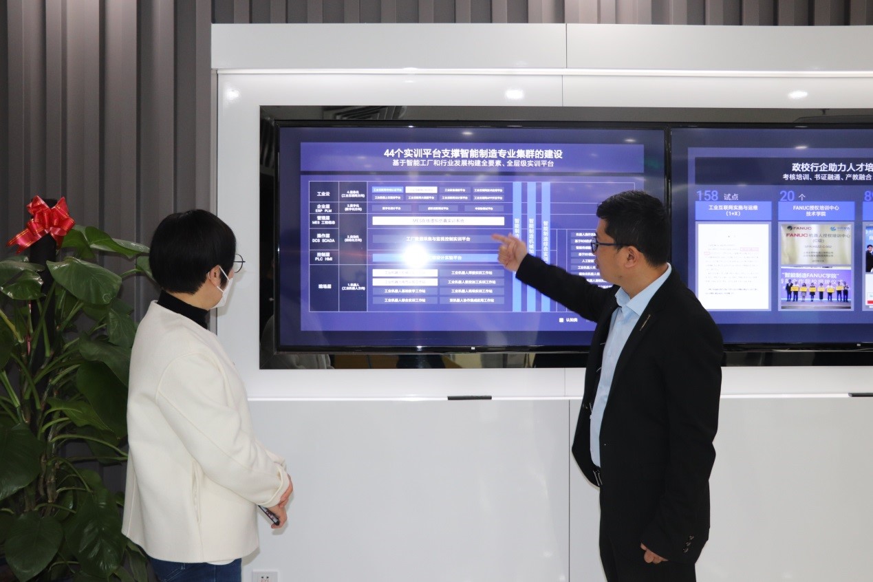 接着,校企双方举行座谈会议,围绕产教融合、高等教育数字化、专业内涵建设等议题展开了深入的交流和研讨。
