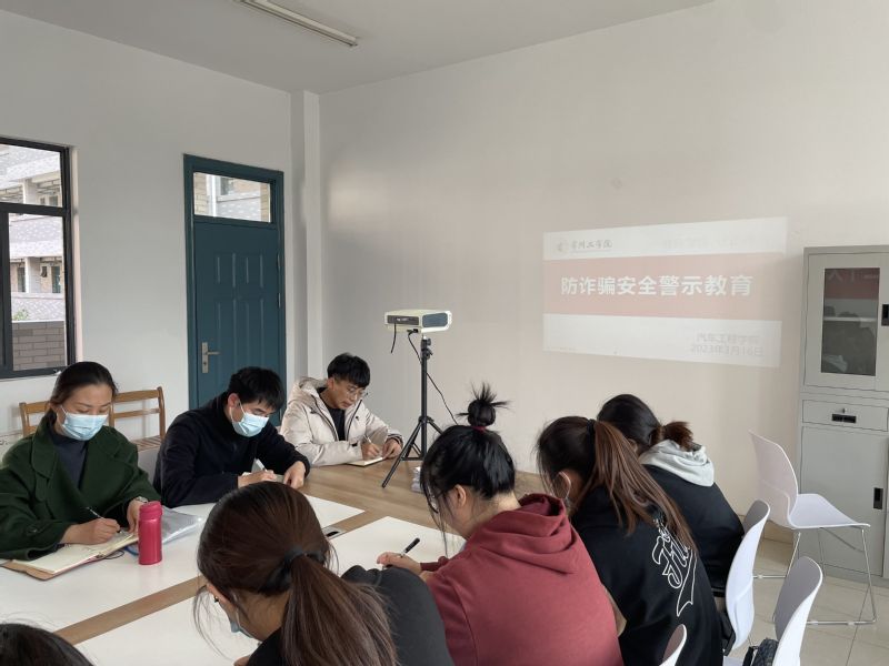 为切实增强同学们的防诈骗意识,提高同学们的自我保护和应对能力,3月16日下午,汽车工程学院在菁园公寓3AB“一站式辅导员工作站”召开防诈骗安全警示教育大会。学院党委副书记苏频、各班班长及主要学生干部参加。会议由辅导员张敏主持。