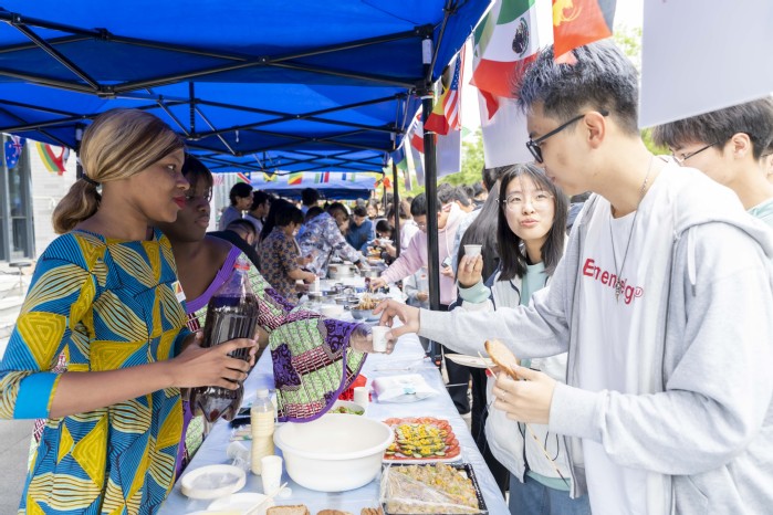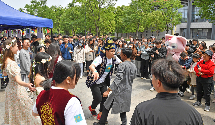 世界美食集市引爆舌尖狂潮。俄式薄饼、韩国年糕、阿拉伯烤肉炒饭、孟加拉咖喱鸡等异国美食齐聚,各国展位都由留学生精心布置,留学生们热情招呼广大师生和校友,详细的向大家介绍本国美食文化和特色,师生们穿梭在各个展位之间,一边品尝美食一边搜集各国专属贴纸,足不出校就能品尝世界美食。