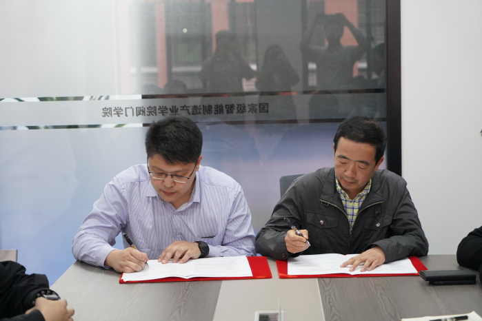 何亚峰与李政源分别代表校企双方签署了校企合作协议,主要在智能制造产业学院建设、人才培养培训基地、实习、实验、实训基地共建、人才培养和科研技术服务等方面开展合作,助力智能制造人才培养。冯涛、吴小锋和李政源共同为智能协同制造与应用国家工程实验室苏南创新中心揭牌。随后,学院举行了实验室主任、副主任聘任仪式,聘任吴小锋为智能协同制造实验室主任,冯涛和李政源为副主任。
