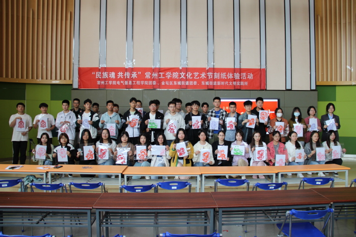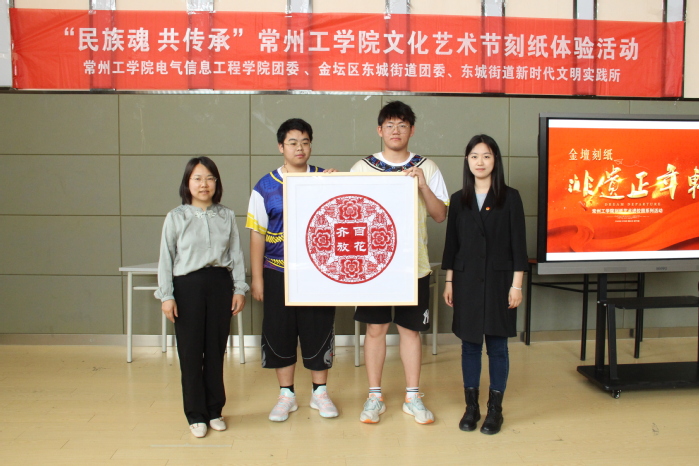 5月7日,纸上生花,“刻”照非遗之美——刻纸艺术进校园系列活动开幕式在文化艺术中心B323举行。此次活动是由常州工学院校团委主办、电气信息工程学院团委承办、金坛区东城街道团工委、东城街道新时代文明实践所协办,是2023年学校大学生文化艺术节系列活动之一。活动邀请金坛刻纸非遗传承人曹钰晈、杨珊娜、王文昌、颜有为四位老师莅临参加。