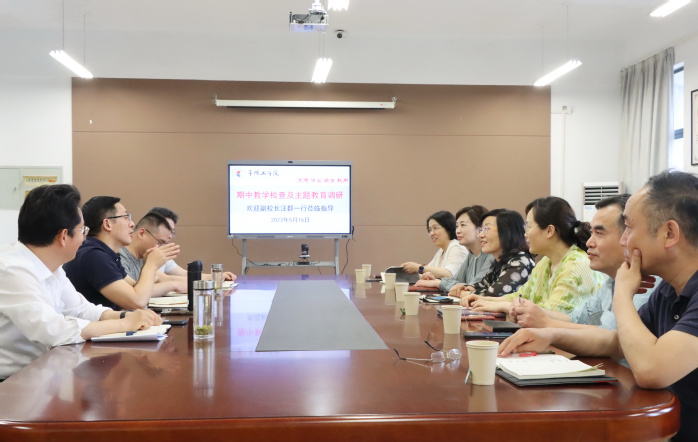 5月16日下午,副校长汪群带领社科处处长何虹、教务处处长邹一琴、国际交流合作处处长王文琴、教学质量管理处处长王瑛、继续教育学院院长金卫东等一行到经济与管理学院进行期中教学检查和工作调研,经济与管理学院党委书记、院长谢金楼,党委副书记郭峥春,副院长陈建忠、李春平,教务办主任、各专业系主任、中心实验室主任等参加调研会议。