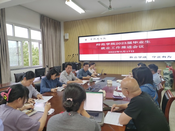为推进学院就业工作,5月17日,师范学院召开2023届毕业生就业工作推进会议,学院党委书记肖华、院长崔涛、党委副书记王爱祥、副院长张志欣、副院长杨丽莉、毕业班班主任、全体辅导员参会。会议由王爱祥主持。