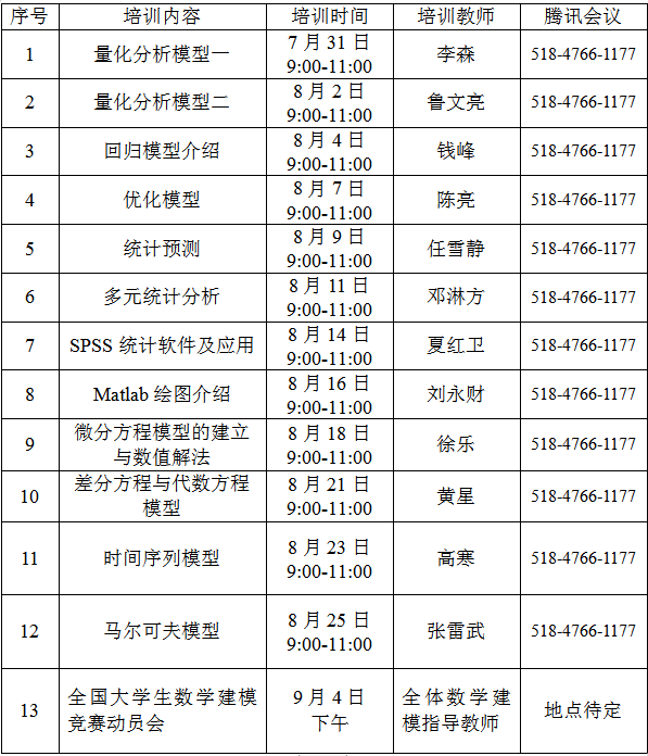 (一) 全国大学生数学建模竞赛暑期培训时间:2023年7月31日至9月4日