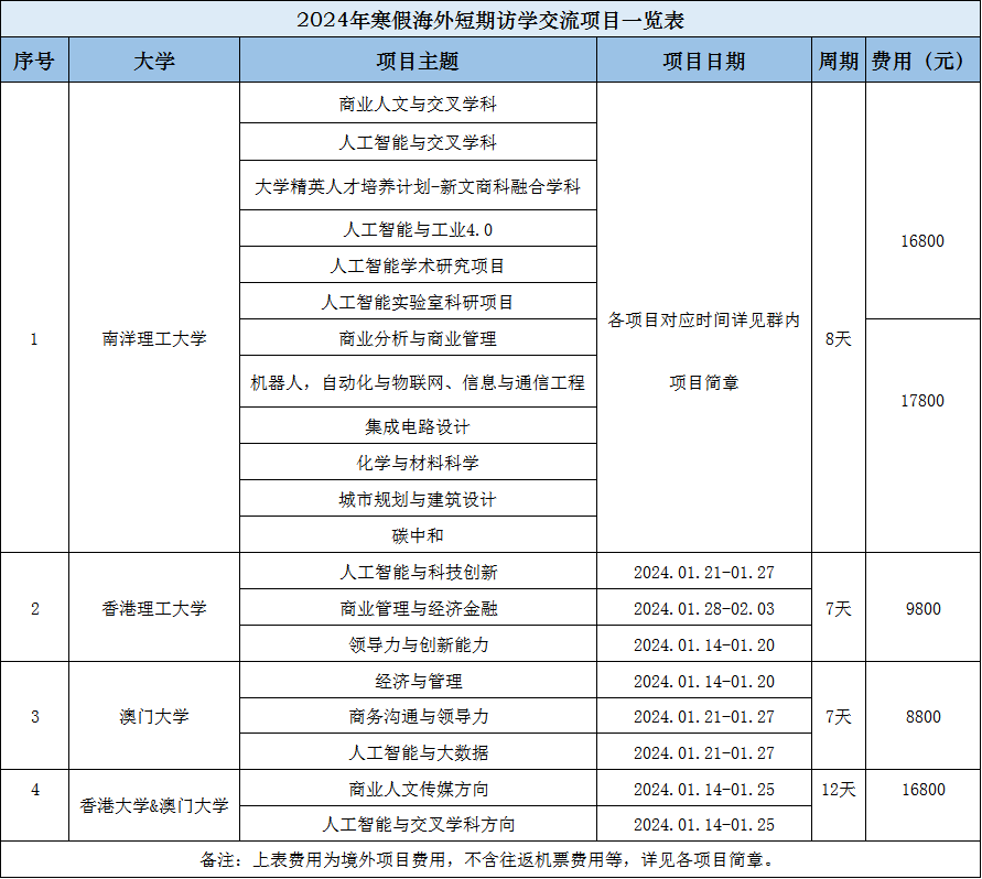 2024年寒假,我校继续开展海外短期访学交流项目,为学生体验名校课程、开拓国际视野、感知异域文化搭建平台。近年来我校已有近千名同学参加此类访学交流项目,学习专业前沿知识、体验当地人文风情、结识其它高校良师益友,收获丰硕。