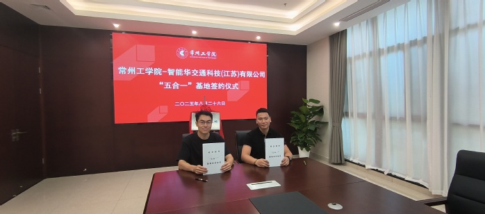 8月26日,智能华交通科技(江苏)有限公司董事长兼总经理冯利华、常务副总经理苏杰等 5 人到访我校,双方举行共建 “五合一” 基地签约揭牌仪式并座谈。我校副校长刘春节,土木建筑工程学院院长李书进、副院长丁川,研究生处副处长邓江桦(挂职)参会。