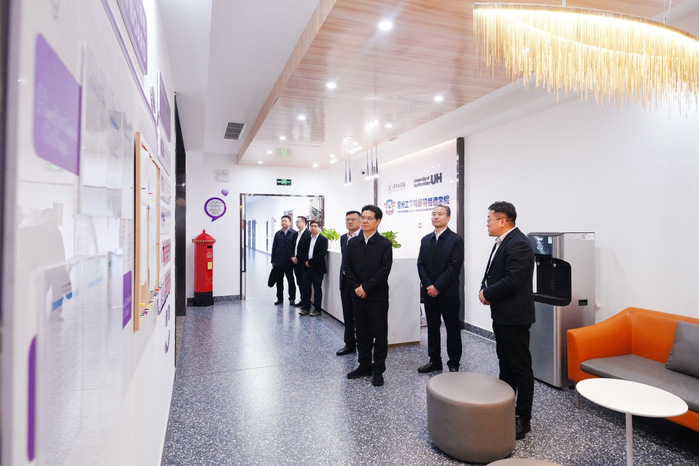 王剑锋一行参观了赫特福德学院,并专门听取了学校事业发展情况汇报。汤正华简要介绍学校2025年在人才培养、学科建设、科技创新、师资队伍建设、国际化办学等方面的举措和成果,以及2026年重点工作和未来主要目标,并就学校发展过程中需要市委市政府关心支持的主要事项进行汇报。