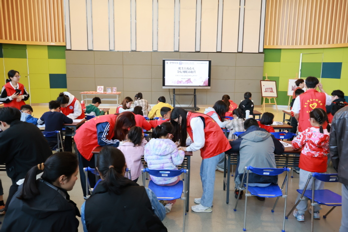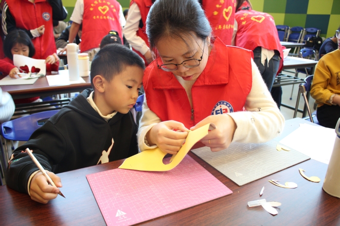 4月2日上午,“纸尖上的春天——金坛刻纸童趣营”中小学生春假研学活动在文化艺术中心B322举办。电气信息工程学院党委副书记徐霞带领10余名学生志愿者组织活动,20余名青少年儿童参与。
